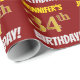 Ce design papier d’emballage comporte un message comme "34e anniversaire de JENNIFER!", avec le "34e" ayant une apparence de couleur fausse/imitation or, et avec le nom et "ANNIVERSAIRE" dans une police amusante et audacieuse. Le nom peut être personnalisé, et l'arrière - plan est de couleur rouge. Un papier comme celui-ci pourrait peut-être être utilisé pour envelopper les cadeaux d'anniversaire donnés à quelqu'un pour célébrer son trente-quatrième anniversaire. [~Z0000204]