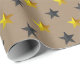 Un papier d'emballage festif pour la période des fêtes de Noël avec étoiles noires et or sur un arrière - plan en papier kraft rustique. Idéal pour toute occasion et fait un emballage cadeau impressionnant.