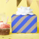 Un papier d'emballage de vacances couleur kraft rustique avec de larges rayures bleu cobalt sur la diagonale.