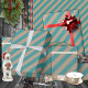 Un papier d'emballage de vacances couleur kraft rustique avec des rayures vertes turquoises et poussiéreuses sur la diagonale.