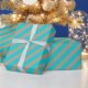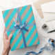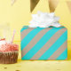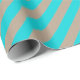Un papier d'emballage de vacances couleur kraft rustique avec de larges rayures bleu turquoise sur la diagonale.