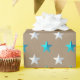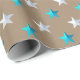 Un papier d'emballage festif pour la période des fêtes de Noël avec des étoiles bleu turquoise et argent sur un arrière - plan en papier kraft rustique. Idéal pour toute occasion et fait un emballage cadeau impressionnant.