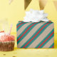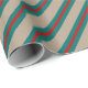 Un papier d'emballage de vacances couleur kraft rustique avec un vert turquoise avec des rayures rouges centrées.
