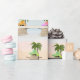 Sable tropical bonhomme de neige avec un casquette de plage, lunettes de soleil et palmier dans le sable sur arrière - plan rayé aquarelle. Arrière - plan peut être modifié.