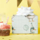 Ce papier d'emballage d'inspiration rétro présente un adorable canard habillé d'un casquette de fête et d'une cravate d'arc, tenant un ballon fantaisiste. L'arrière - plan doux vert sauge en vichy ajoute un aspect rustique et cosy.