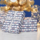 Premium wrapping paper featuring a repeating nautical pattern of sailboats, anchors, waves, and "Sailing Into Retirement" text on navy stripes—perfect for celebrating retirement milestones.