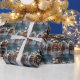 This festive design captures the joyful spirit of the holiday season, featuring an adorable dogs.Nestled in a winter wonderland, complete with a decorated Christmas tree, and beautifully wrapped presents. Snowflakes gently fall, adding a magical touch to the scene, while the vibrant colors of the holiday decorations create a warm and cheerful atmosphere.