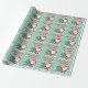 Santa Claus cartoon with Christmas tree teal Wrapping Paper. Cute Holiday design for friends and family. Personalized gift wrap for parents, children and babies. Funny joyful illustration with for the winter season. Add your own name and custom seasons greetings like Merry Christmas or Happy Holidays. Customizable background color.