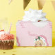 Ta petite fille adore le rose ? Elle adorera ce papier d'emballage classique du Père Noël. Père Noël portant un casquette rose et l'arrière - plan rose avec parties scintillant dorée. Vous personnalisez le papier avec son nom en utilisant le modèle facile fourni.
