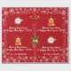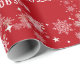 Papier d'emballage moderne, élégant et mignon de Noël, avec une image du Père Noël dans son costume rouge (tenant un sucre de canne) et un de Rudolph (portant un casquette de Noël), le texte "Joyeux Noël et Bonne Année 20YY" dans écriture stylisée / calligraphie manuscrite, et un nom personnalisé. Avec des éclats de flocons de neige blancs et argentés, un ruban rouge et une paire de cloches de Noël avec un brin de chacune sainte. Assurez-vous de personnaliser le nom et l'année.
