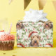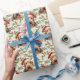 Un portrait d'un beau chien Airedale Terrier portant un casquette du Père Noël rouge et blanc est la caractéristique du motif sur ce papier d'emballage cadeau de vacances. Le portrait est placé sur un arrière - plan de feuilles verts et de baies rouges. Célébrez Noël comme Terrier!