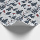 Papier Cadeau Scène D'Hiver Avec Arbres, Oiseaux Rouges Et Neige