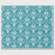 Papier Cadeau Seahors Damask Patterson Turquoise bleu et blanc