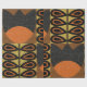 seamless pattern in scandinavian design style. Retro mid century modern inspired background in vintage colors with isolated linen cotton woven cloth texture. Stylized flowers and leaves geometr