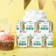 Wrap up your gifts with the ultimate personalized touch using this vibrant Sesame Street First Birthday Wrapping Paper! This high-quality paper features a repeating pattern showcasing a colorful scene with Big Bird, Elmo, Ernie, Oscar the Grouch, and friends stacked by the "123 Sesame Street" sign. The design is customized with the birthday child's milestone: "IS TURNING one" in eye-catching teal and green fonts. Set against a clean white background with playful cloud outlines, this paper is perfect for making your gifts stand out at any toddler's first birthday party.