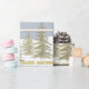 Un salut de vacances familier, a été numériquement édité, pour créer ce dessin graphique, de l'or guildé, des arbres, regroupés, sur une toile de fond enneigée, avec un éclat, Symbolique, Étoile Sainte, contre un bleu ardoise, ciel.