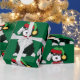 Cartoon mignon Cheepadoodle Noir et Blanc Chiot vêtu de casquette Elfe vert et col elfe rouge. Papier d'emballage vert pâle adorable berceau!