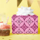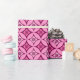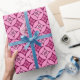 Shippo japonais traditionnel, ou "sept trésors" papier d'emballage à motifs de cercles entrelacés avec un motif de fleurs central - fleurs en rose pastel et fuchsia avec un arrière - plan rose profond et vin bordeaux