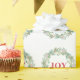 Elégant papier d'emballage de Noël avec "JOY" en rouge entouré d'une couronne verdoyante. Ce papier d'emballage de vacances apportera une touche festive à vos cadeaux de Noël.