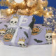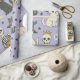 Papier Cadeau Skeletons d'Halloween violets, Chats de Sorcière e