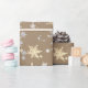 Un papier d'emballage couleur kraft brillant avec de grandes et petites flocons de neige en argent blanc et en or.