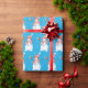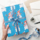 Papier Cadeau Snowman de Noël avec oiseau sur Aqua