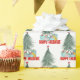 Arbre de Noël avec cadeaux de vacances, texte de Joyeuses Fêtes, et une souris à oeil portant un casquette du Père Noël sur un arrière - plan blanc. La couleur Arrière - plan peut être modifiée.