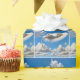 Mignonne souris dormant sur une plume blanche flottant dans un ciel d'été