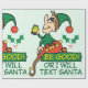 Soyez bon ou je texte Père Noël ! Noël drôle indiquant avec Elf avec un costume vert et rouge. Il est Elf moderne et il vous observe pour voir si vous êtes mauvais ou bons ces vacances !