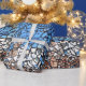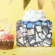 Une belle mosaïque de vitraux bleu, ambre et blanc.