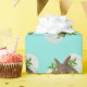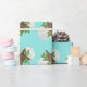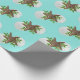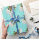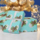 Design de Noël de plage sur le rouleau de qualité de l'emballage cadeau. Starfish avec des feuilles verts et deux dollars de sable est le motif qui couvre le papier bleu tropical.