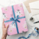 La cigogne volant dans les nuages avec bébé dans une couverture sur arrière - plan rose pour bébé cadeau Arrière - plan couleur peut être changée.