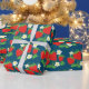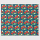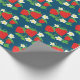 Papier Cadeau Strawberry and Flowers Pattern Blue