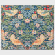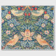 Cette conception est basée sur un motif créé par le designer britannique William Morris (1834-1896), particulièrement connu et reconnu pour son association avec le Mouvement des Arts et de l'Artisanat. Strawberry Thief est l'un des dessins répétés les plus populaires de William Morris pour les textiles. Le motif prend pour sujet les oiseaux à la gorge que Morris a trouvé voler des fruits dans le jardin de cuisine de sa maison de campagne, Kelmscott Manor, dans le Oxfordshire. Le motif a été initialement imprimé à l'aide de la méthode de décharge indigo, une technique ancienne qui avait été utilisée pendant de nombreux siècles principalement dans l'Est. Morris admirait la profondeur des couleurs et des détails nets qu'il produisait. William Morris tenta d'imprimer par cette méthode pour la première fois en 1875, mais ce n'est qu'en 1881, lorsqu'il déménagea dans son usine de l'abbaye de Merton, près de Wimbledon, qu'il réussit finalement. L'ensemble du processus aurait pris des jours et c'est pour cette raison qu'il s'agissait de l'un des cottons les plus chers de Morris & Co. Néanmoins, les clients n'ont pas été découragés par le coût élevé, et Strawberry Thief s'est avéré être l'un des motifs de Morris les plus prospères sur le plan commercial. La beauté et l'élégance du motif sont encore très appréciées aujourd'hui.