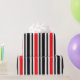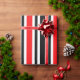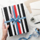 Ce papier d'emballage est recouvert de rayures rouges et noires. Bon pour de nombreuses occasions.