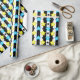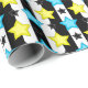 Papier Cadeau Striped Blue Yellow Stars Pattern Design