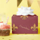 Ceci a personnalisé des caractéristiques de papier d'emballage un symbole en bois de Fleur de Lis de faux sur un arrière - plan riche de rouge de Bordeaux. Cliquez sur la personnaliser il pour choisir votre police et couleur de police ou pour changer le placement des textes.