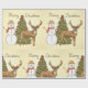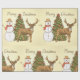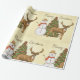 Une scène de noël vintage avec un arbre un bonhomme de neige et un renne. Cette conception semble vraiment efficace sur ces papiers d'enveloppement