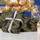 Enveloppement élégant cadeau avec un motif de poissons Koi noirs, sur un arrière - plan décoratif de couleur or. **Veuillez noter qu'il n'y a pas d'or dans ce design. La couleur or est un crème clair/jaune pour représenter l'or.