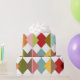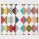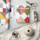 Ce papier d'emballage a une conception Bauhaus de diamants qui se chevauchent dans des couleurs rétro.