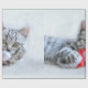 Envelopper le papier avec une jolie photo de Noël d'un chat tabby gris mordant joyeusement un chapeau santa rouge. Ses gros pattes moelleuses rendent cette photo très agréable.