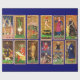 Arcanes Majeurs : le Soleil, La Lune, La Fortitude, Le Jugement, L'Homme Chanté, Les Amants, Le Diable, Le Monde, L'Hermite, La Roue de la Fortune, Le Magicien, L'Imbécile. Design graphique et élaboration par Bulgan Lumini. Ce beau pont Visconti peut être le plus ancien pont Tarot de l'existence. C'est l'un des nombreux ponts italiens peints à la main que la famille Visconti a commandé au XVe siècle.Les cartes qui subsistent sont d'un intérêt historique particulier en raison de la beauté et du détail du design, qui a souvent été exécuté dans des matériaux précieux et souvent reproduit les membres des familles Sforza et Visconti dans des vêtements et des décors d'époque. Par conséquent, les cartes offrent également un aperçu de la vie nobiliaire à Milan. Commandée par Filippo Maria Visconti, duc de Milan, et par son successeur Francesco Sforza.