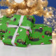 Papier d'emballage de teckels de Noël, chiens mignons de saucisse dans des équipements de fête de vacances.