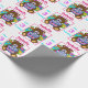 Papier Cadeau Teddy Bear Anniversaire Nom du gâteau Age rose