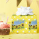 Cadre à points Polka avec notes musicales et tournesols jaunes.