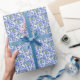 Ce papier d'emballage comporte un motif de fleurs bleues peintes.