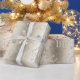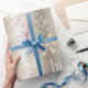 Ce design d'enveloppement cadeau de Noël est orné d'un beau motif textuel parsemé de flocons de neige, le tout dans des teintes d'or chatoyant. Certains du texte incluent "Joyeux, Lumineux, Noel, Bonnes Fêtes, Paix, Joie et Joyeuses Fêtes". Recherchez ID257 pour voir d'autres options de couleur et d'autres produits avec cette conception.