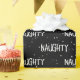 Texte blanc NAUGHTY avec des flocons de neige sur arrière - plan noir. Le texte et la couleur arrière - plan peuvent être modifiés.