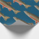 Papier d'emballage de truite brune. Utilisez-le pour emballer des cadeaux pour les papas ou les grands-pères qui aiment la pêche. Couleur bleu foncé masculine avec motif de gros poissons. Parfait pour emballer des cadeaux pour le pêcheur de lac ou de rivière.