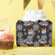 Wrap your gifts with "much wow" this holiday season! This elegant and adorable wrapping paper features realistic Shiba Inu dogs wearing cozy blue and white striped turtleneck sweaters. The pattern is accented with large, detailed silver snowflakes (printed effect) and festive red holly berries against a sleek black background.